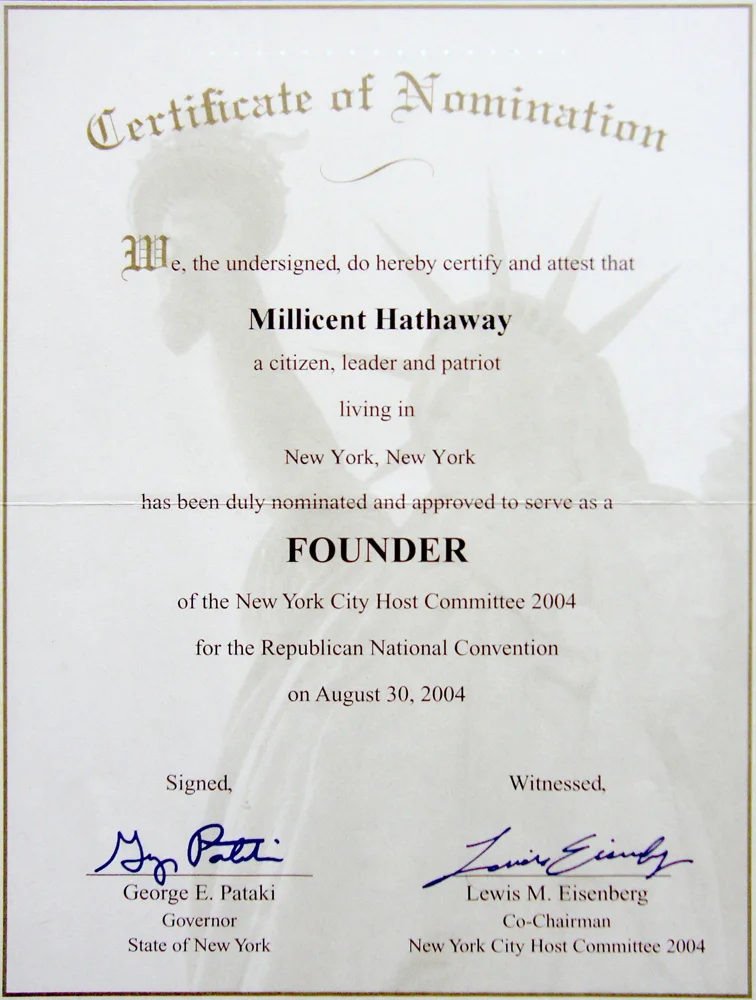 Soon she had received free magazine subscriptions, job offers, and believe it or not (we have no idea how), she was named a Founder of the New York City Host Committee for the 2004 Republican National Convention: